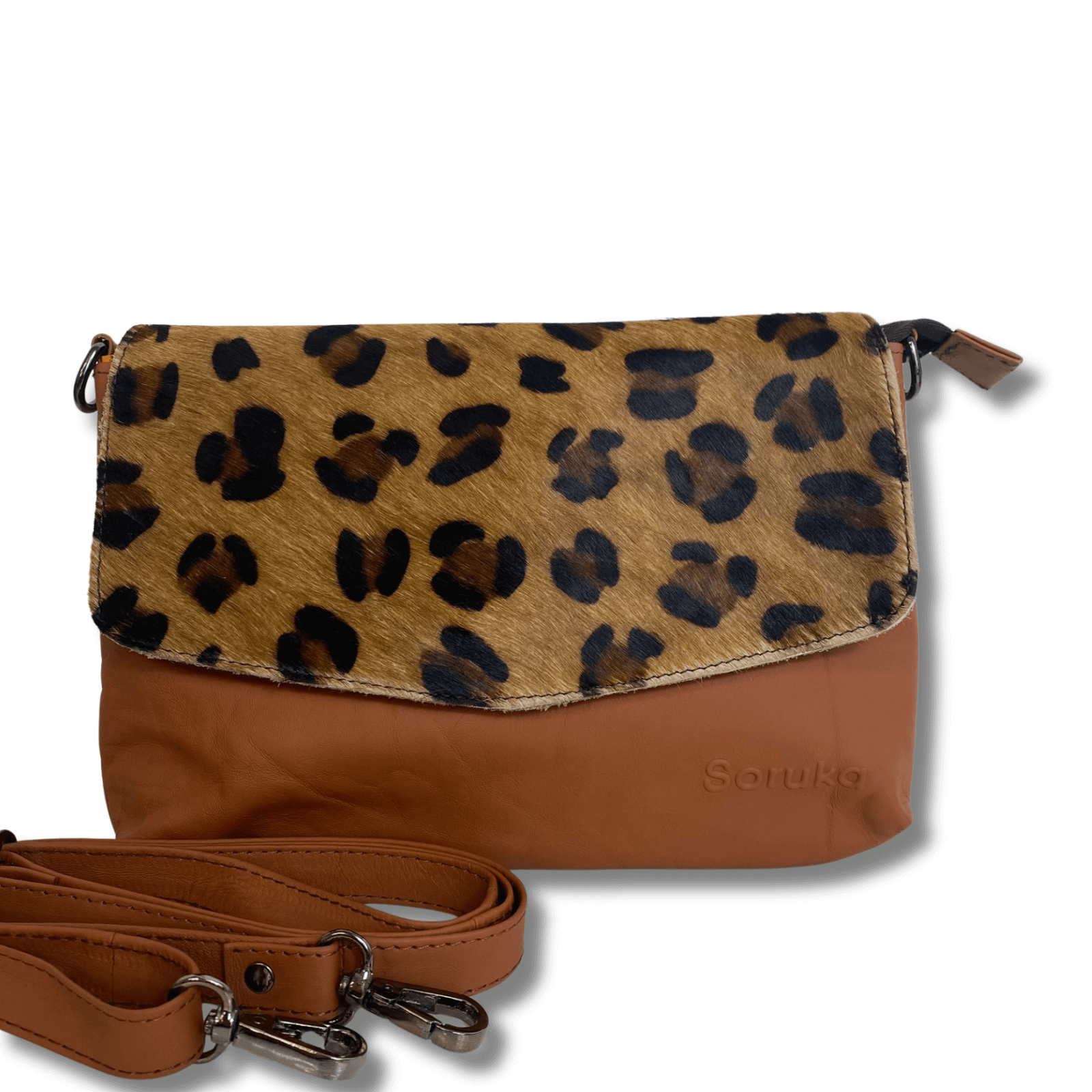 Soruka Lissandra Large Leather Crossbody Bag - Tan Leopard