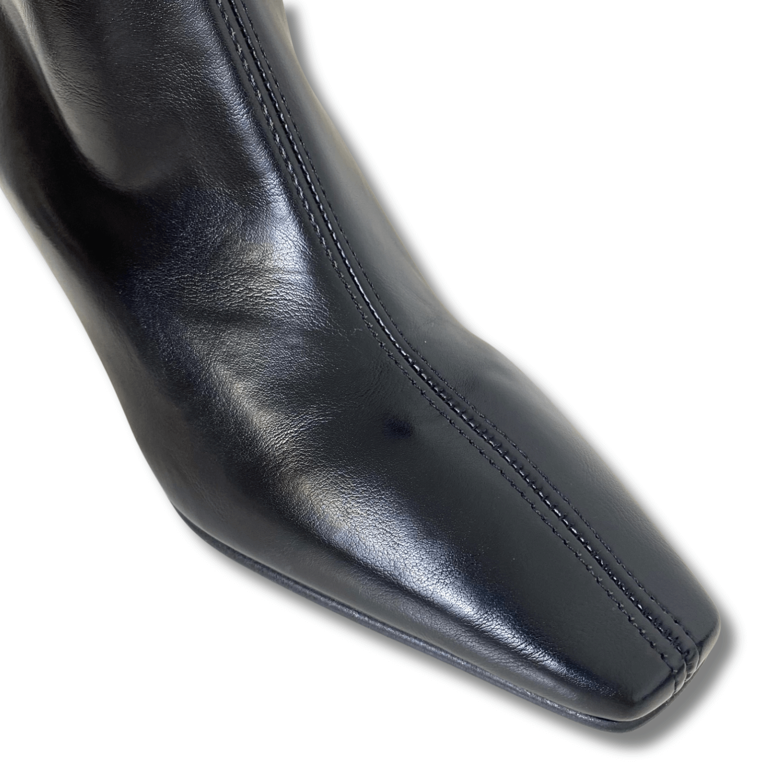 Miss Elastic Black Leather Square Toe Long Length Boots