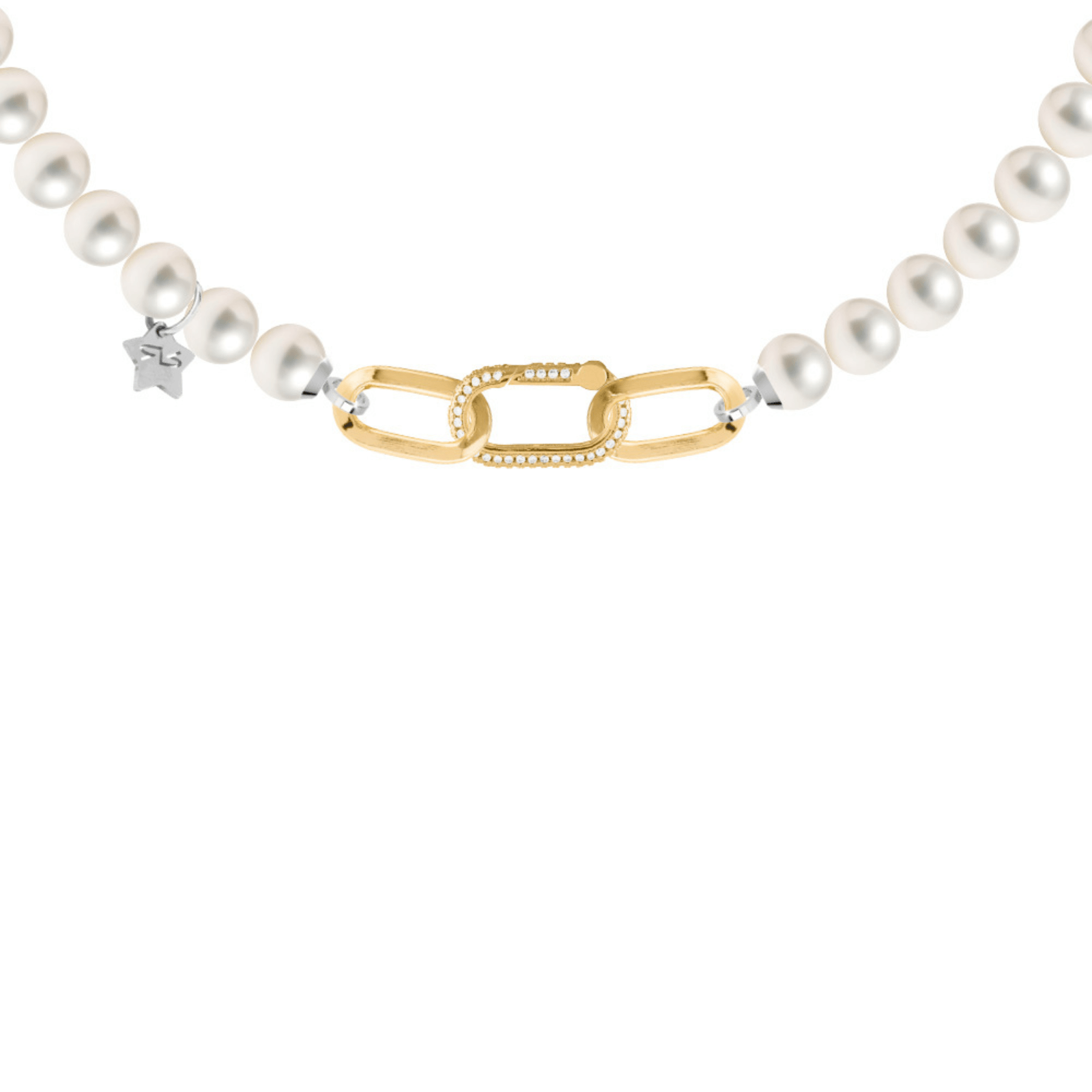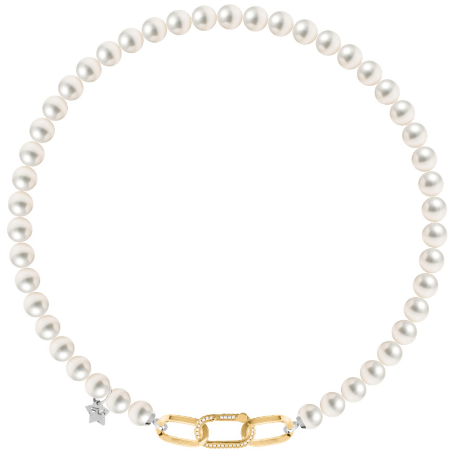 Rebecca Diva Gold Crystal Clasp Closure, Pearl Necklace