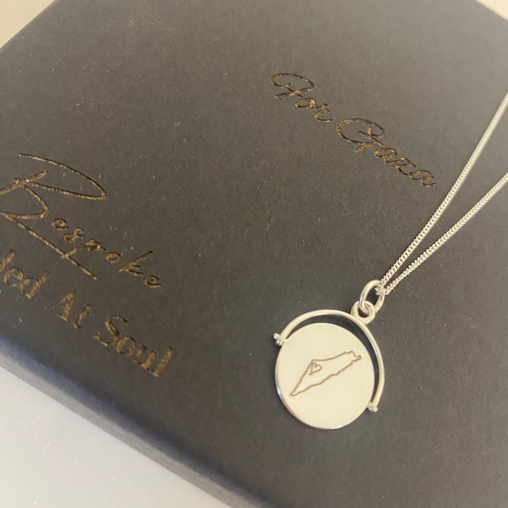 Ladies sterling silver necklace to wear close to your heart in support for all those in Gaza. Laser engraving front and back. Representing a powerful symbol of support for a profound cause. Crafted with attention to detail, love and quality, this necklace embodies resilience and solidarity.