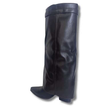 Introducing our latest fold over boots they are the ultimate night-out boot. A glamorous play on the cowboy boot trend. Featuring a luxury vegan leather material, just below knee-high height and block heel - we are obsessed.