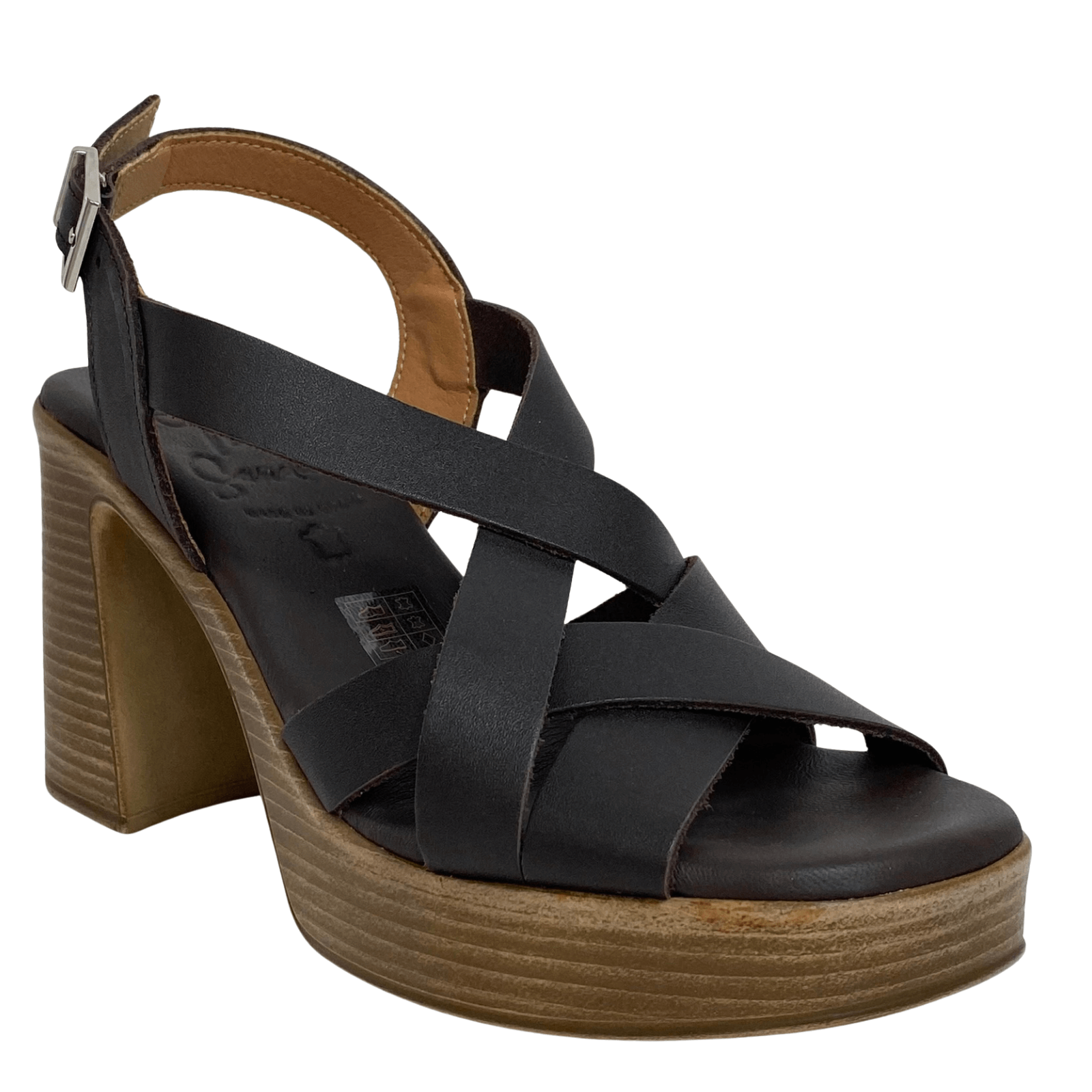 Oh My Sandals Brown Leather Block Heel Sandals
