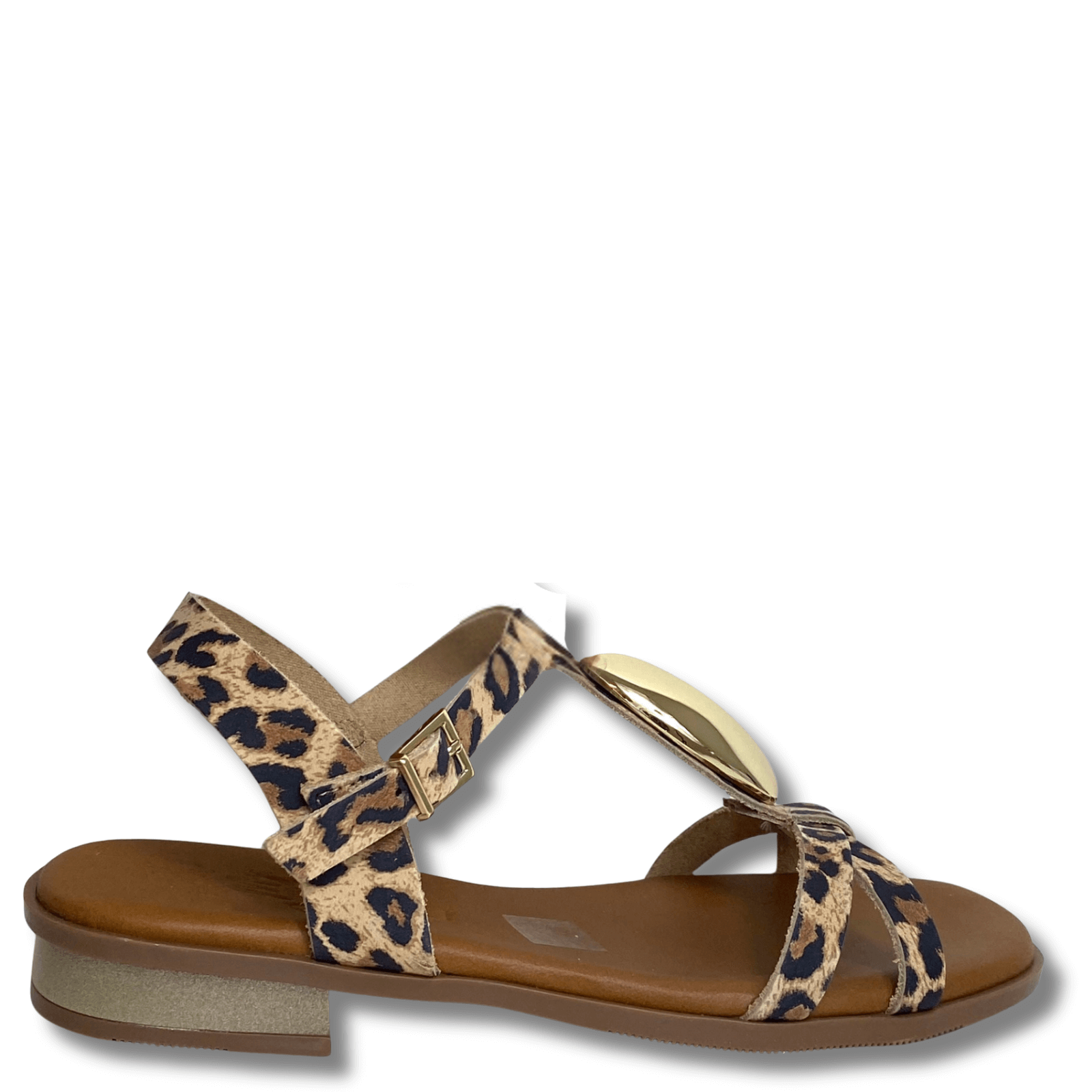 Oh My Sandals Leopard Leather Flat Strappy Sandals
