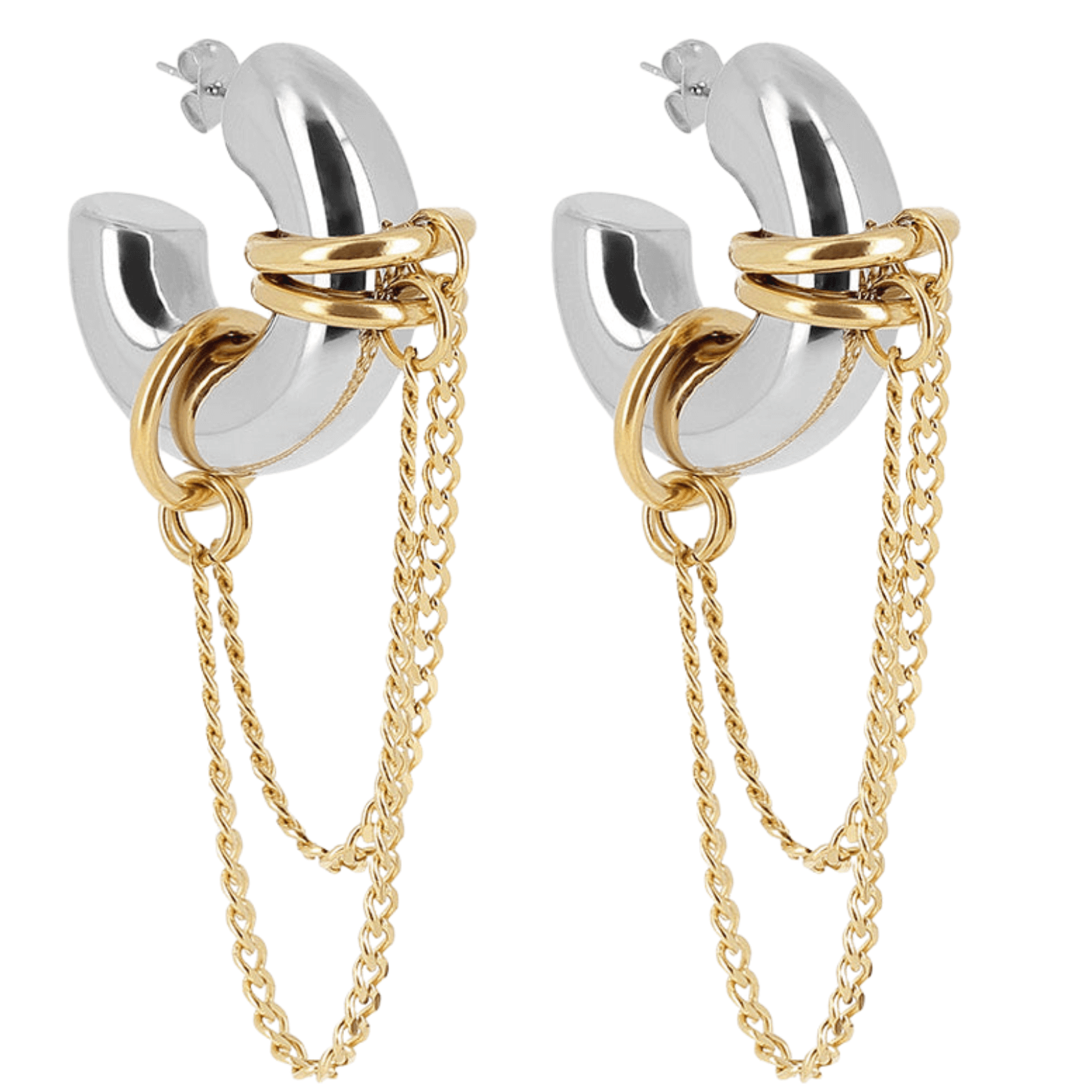 zag-silver-chubby-hoop-gold-dangle-chain-earrings