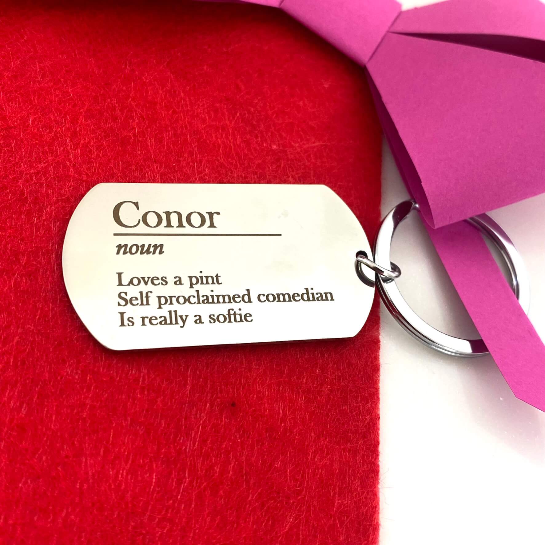Give a gift that celebrates who they are. This personalised oval stainless steel keyring features your loved one's name engraved on the front, accompanied by three qualities that define them best. The reverse offers a blank canvas for your own heartfelt message, making it a truly bespoke Valentine's keepsake. Crafted from premium stainless steel for lasting durability, it's a meaningful accessory they'll treasure every day.