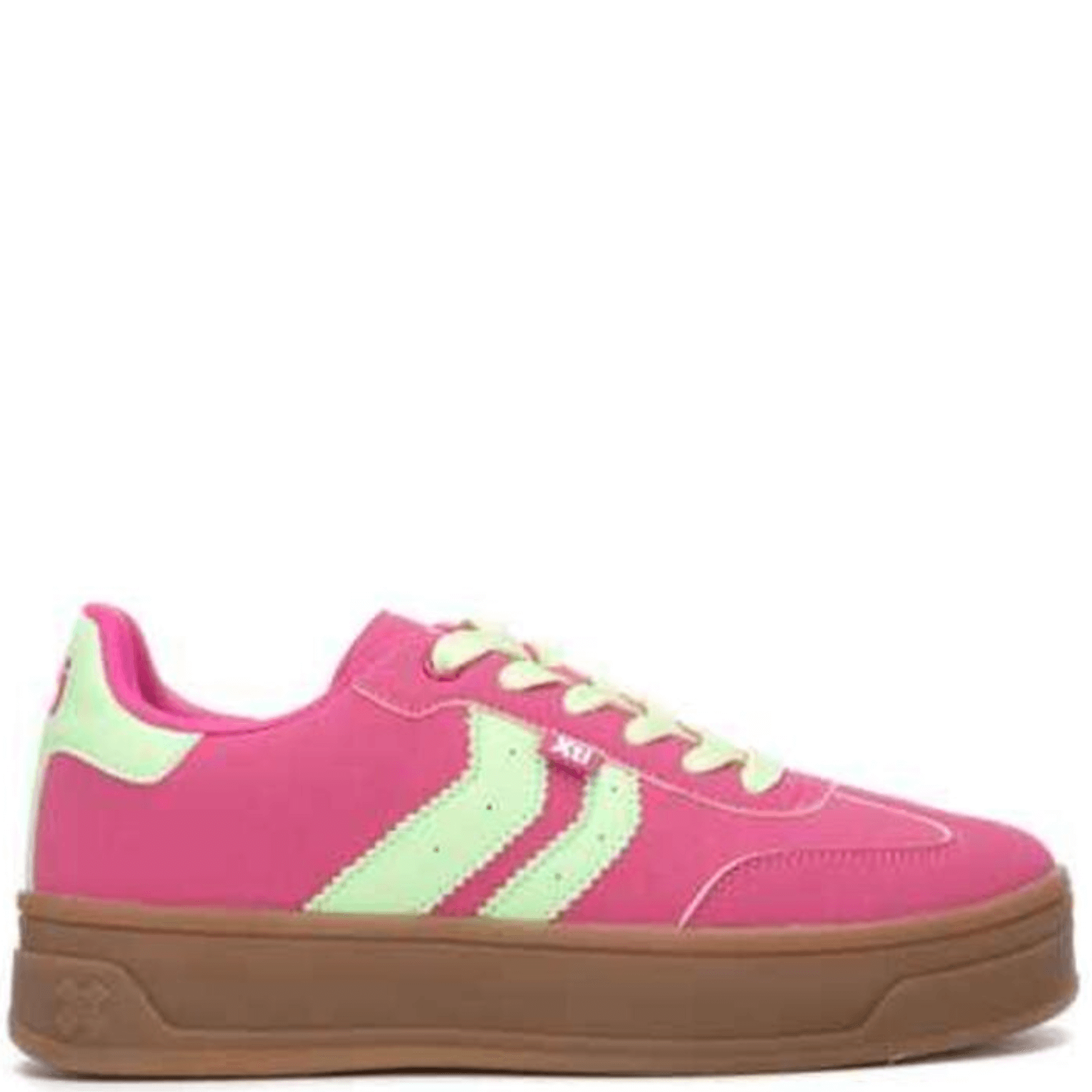 Ladies XTI sneakers in a bold pink toned suede effect with white detail, trending gum sole. These light weight trend worthy trainers are the prefect addition this season.