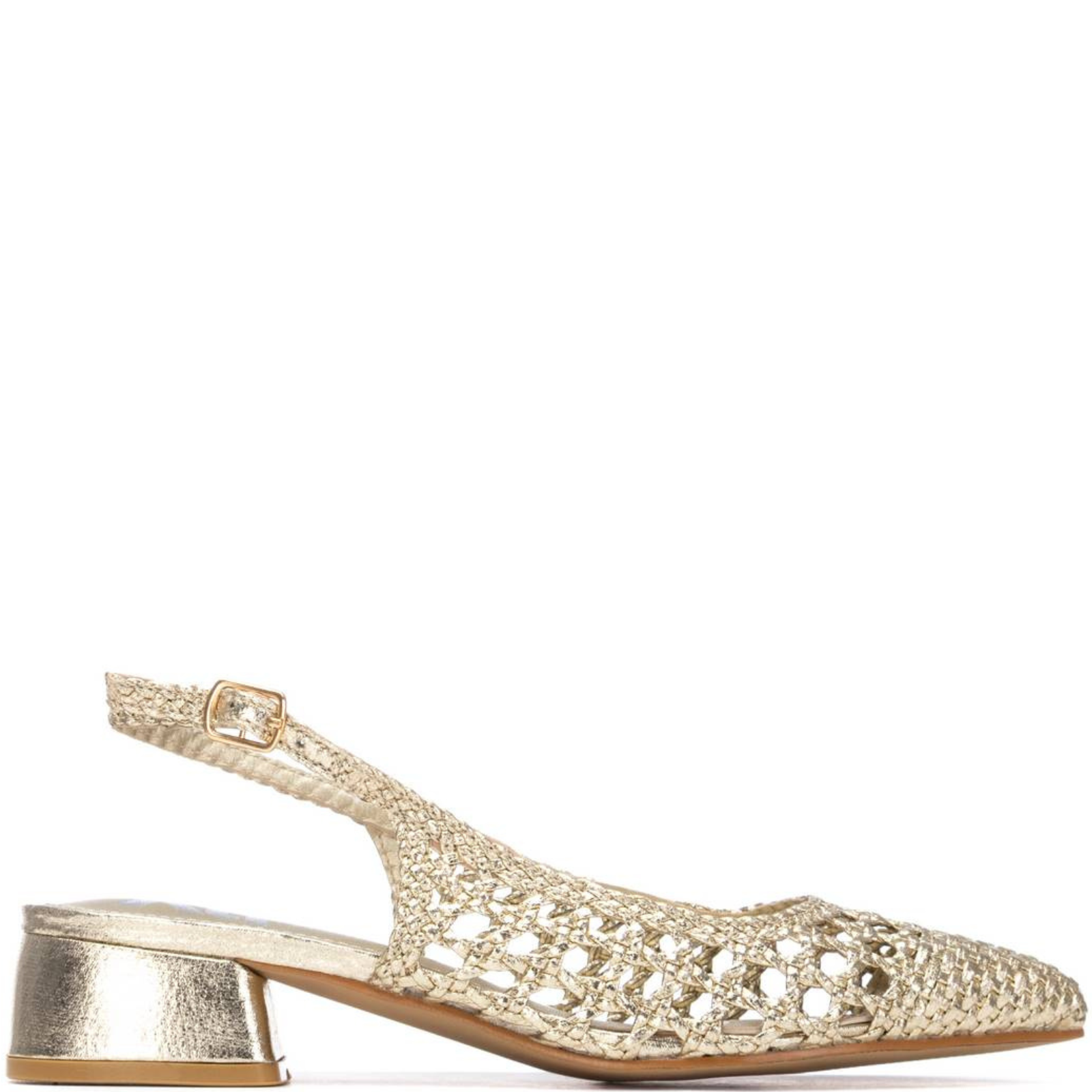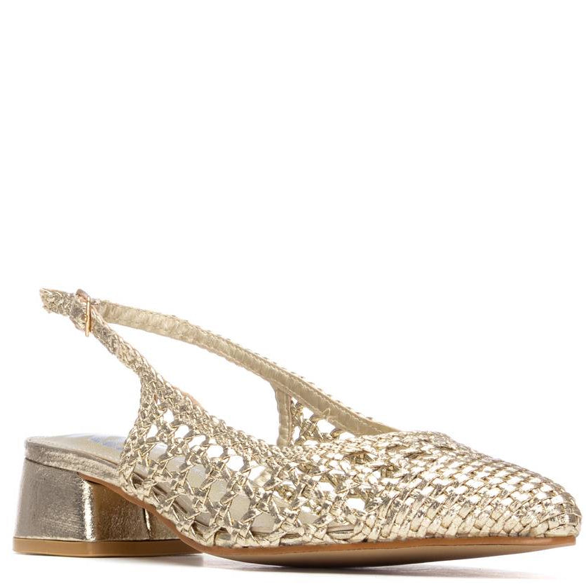 Home / Shop / XTI / XTI Gold Woven Sling Back Block Heel Shoes