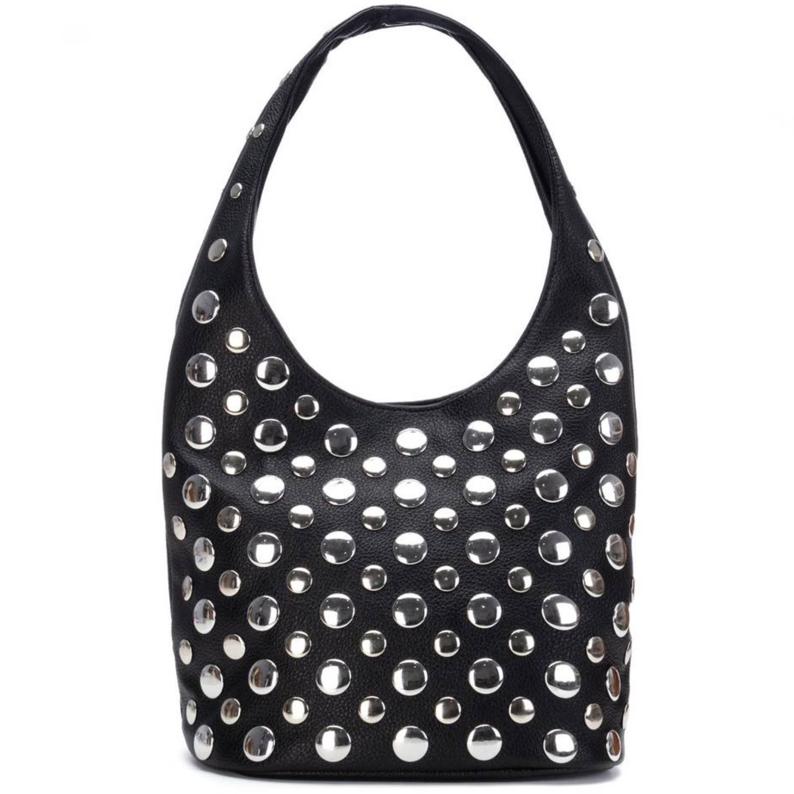 Ladies black shoulder bag from XTI's ladies handbag collection. Complete with edgy silver studding.