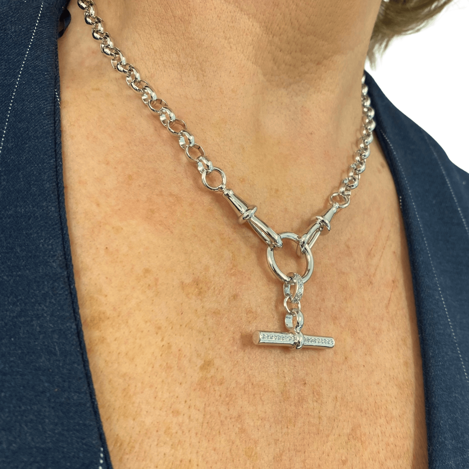 Absolute Silver Chunky Rolo Link TBar Necklace