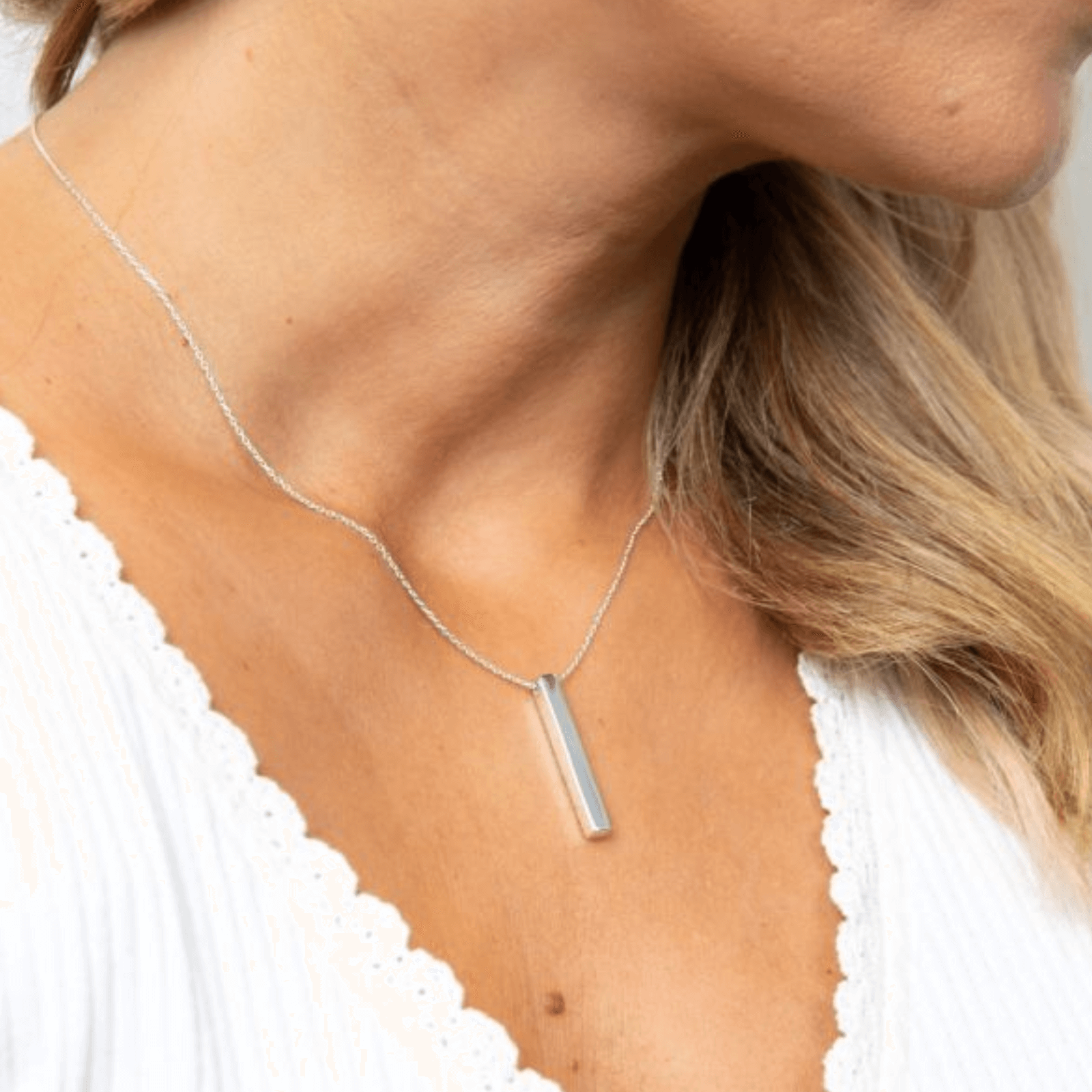 BeJeweled Bespoke Silver Long Bar Drop Pendant & Chain