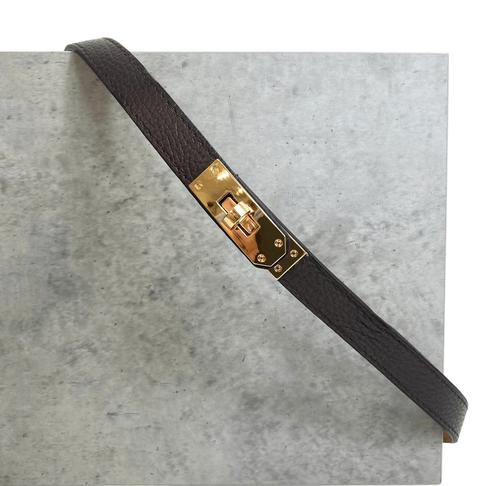 Luxury brown leather belt with gold buckle, adjustable sizing Please note this is a high waisted belt not suitable for trousers, but prefect for dress or shirts.