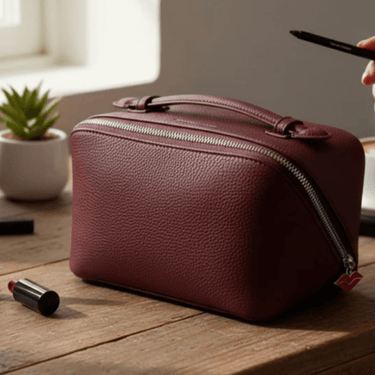Crafted from premium burgundy wine toned faux leather, the Chic Beauty Box opens completely flat with one smooth zip — no more rummaging or tipping everything out to find your favourite lipstick. Inside, the two spacious compartments and central zipped pocket make it effortless to separate your essentials — skincare on one side, makeup on the other, and smaller treasures neatly stashed in between.