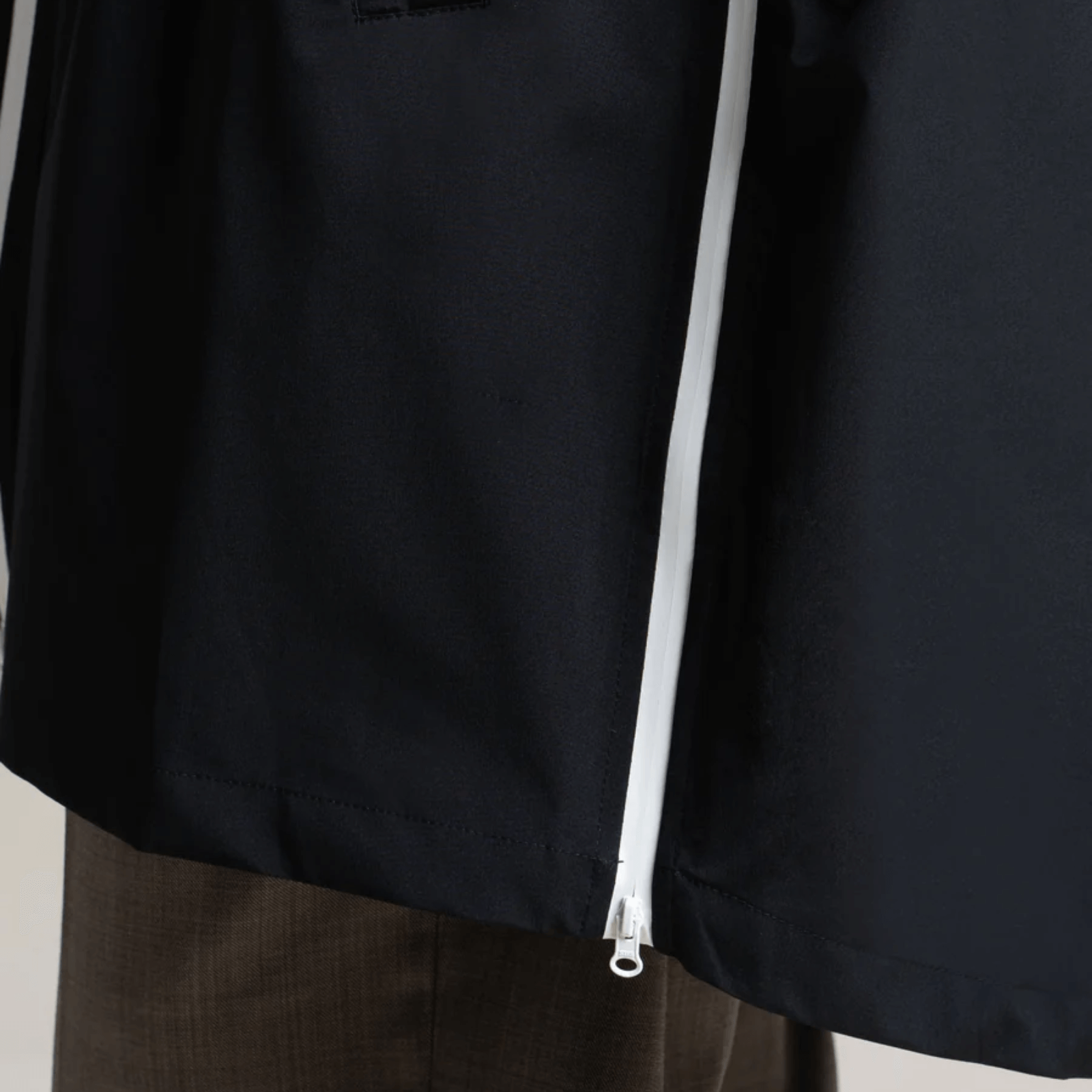 Engineered for unpredictable weather, this black waterproof raincoat combines practical protection with refined style. The adjustable hood shields against rain and wind, while the contrasting white zip adds a contemporary design detail. Cut for a comfortable fit, it's an essential layering piece for transitional seasons and everyday wear. Durable water-resistant fabric ensures longevity through repeated wear and washing.