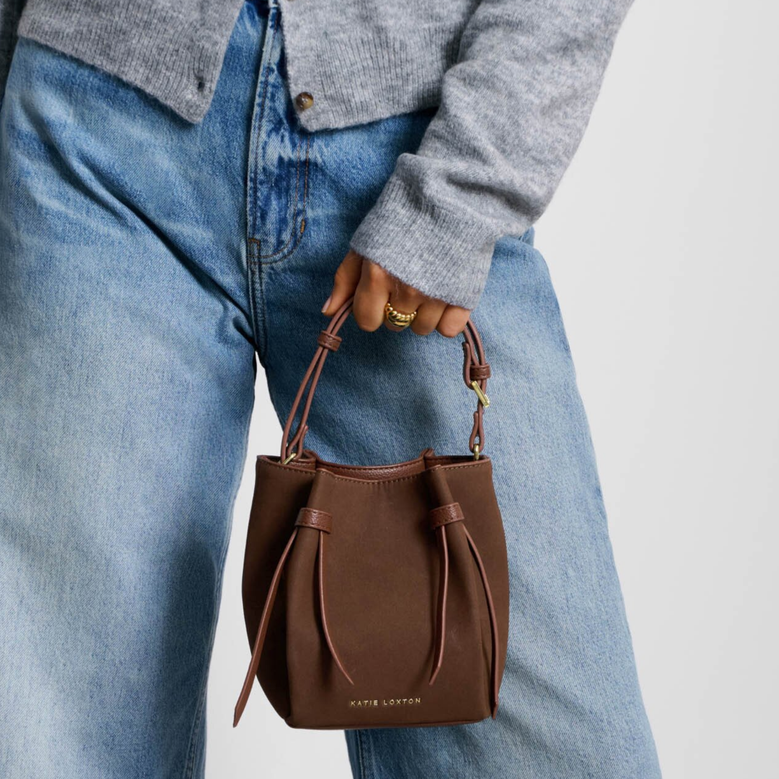 Katie Loxton Celina Mini Faux Suede Bucket Bag - Chocolate