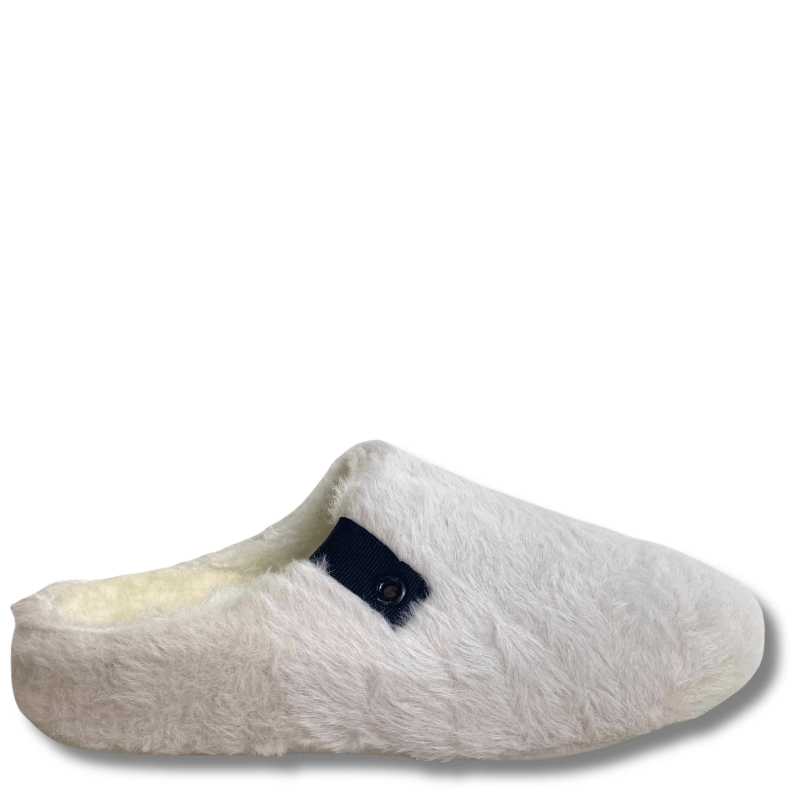 Trendy worthy bedroom slippers these ladies slip on slippers are complete with rubber sole. Fluffy lined.