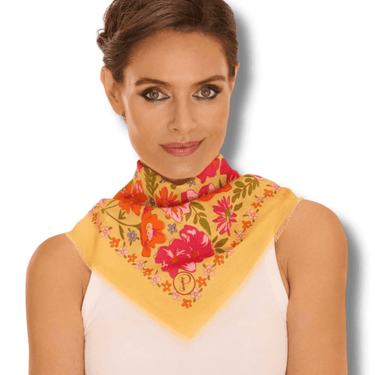 Powder Sketched Florals Mustard Cotton Square Scarf