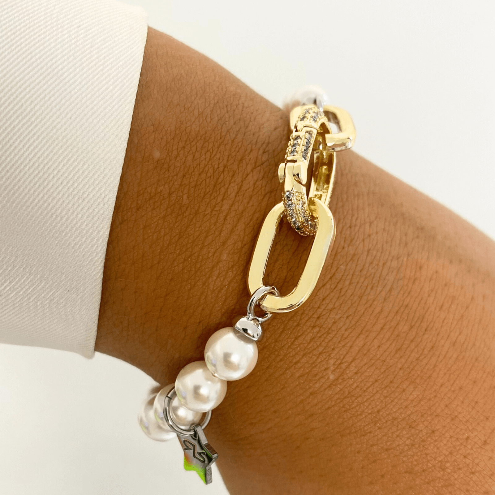 Rebecca Diva Gold Chunky Oval Link & Pearl Bracelet