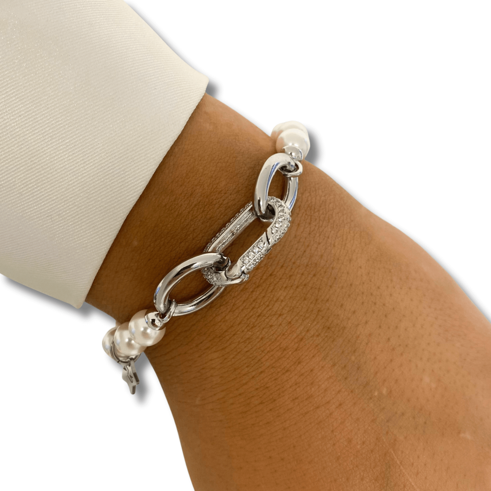 Rebecca Diva Silver Oval Closure Pearl Chain Bracelet