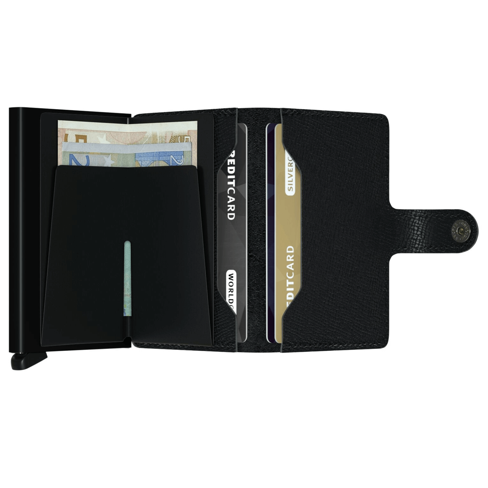 The mini wallet from Secrid is small in size and surprisingly large in storage capacity, the Miniwallet combines the best of both worlds. The exterior holds banknotes, receipt and cards, while the aluminium Cardprotector allows you to slide out cards with one simple motion and protects them from bending, breaking and unwanted wireless communication.