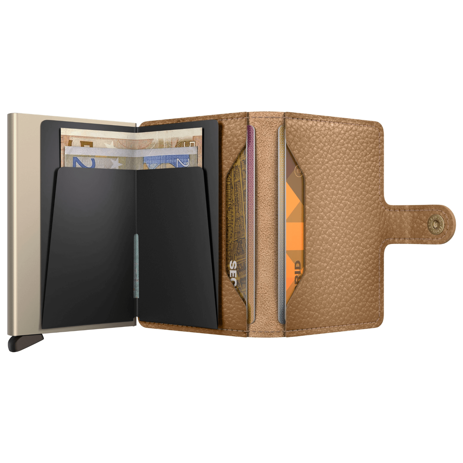 The mini wallet from Secrid is small in size and surprisingly large in storage capacity, the Miniwallet combines the best of both worlds. The exterior holds banknotes, receipt and cards, while the aluminium Cardprotector allows you to slide out cards with one simple motion and protects them from bending, breaking and unwanted wireless communication.