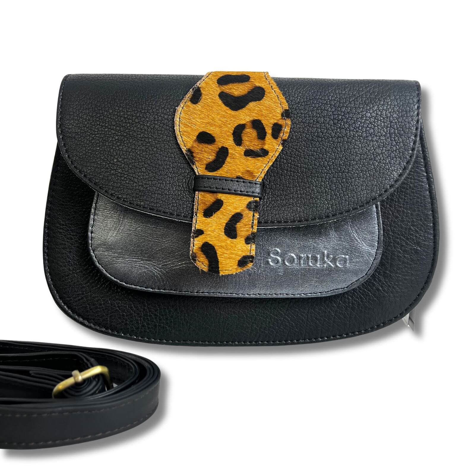 Soruka Violet Small Leather Saddle Bag - Black Leopard