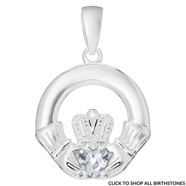 Sterling Silver Claddagh Birthstone Pendant & Chain Necklace Set