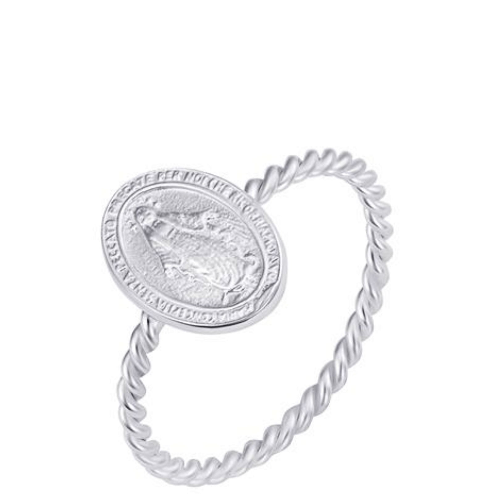 Precious Miraculous medal ring on a dainty sterling silver twist band. Wear solo or layer.