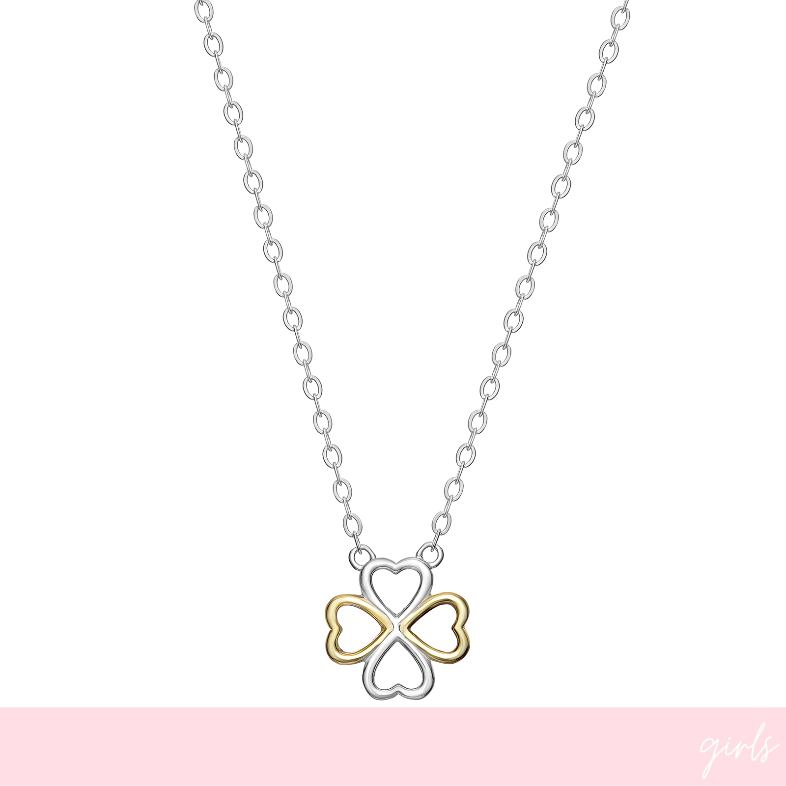 Sterling Silver Necklace with two tone heart clover Pendant.