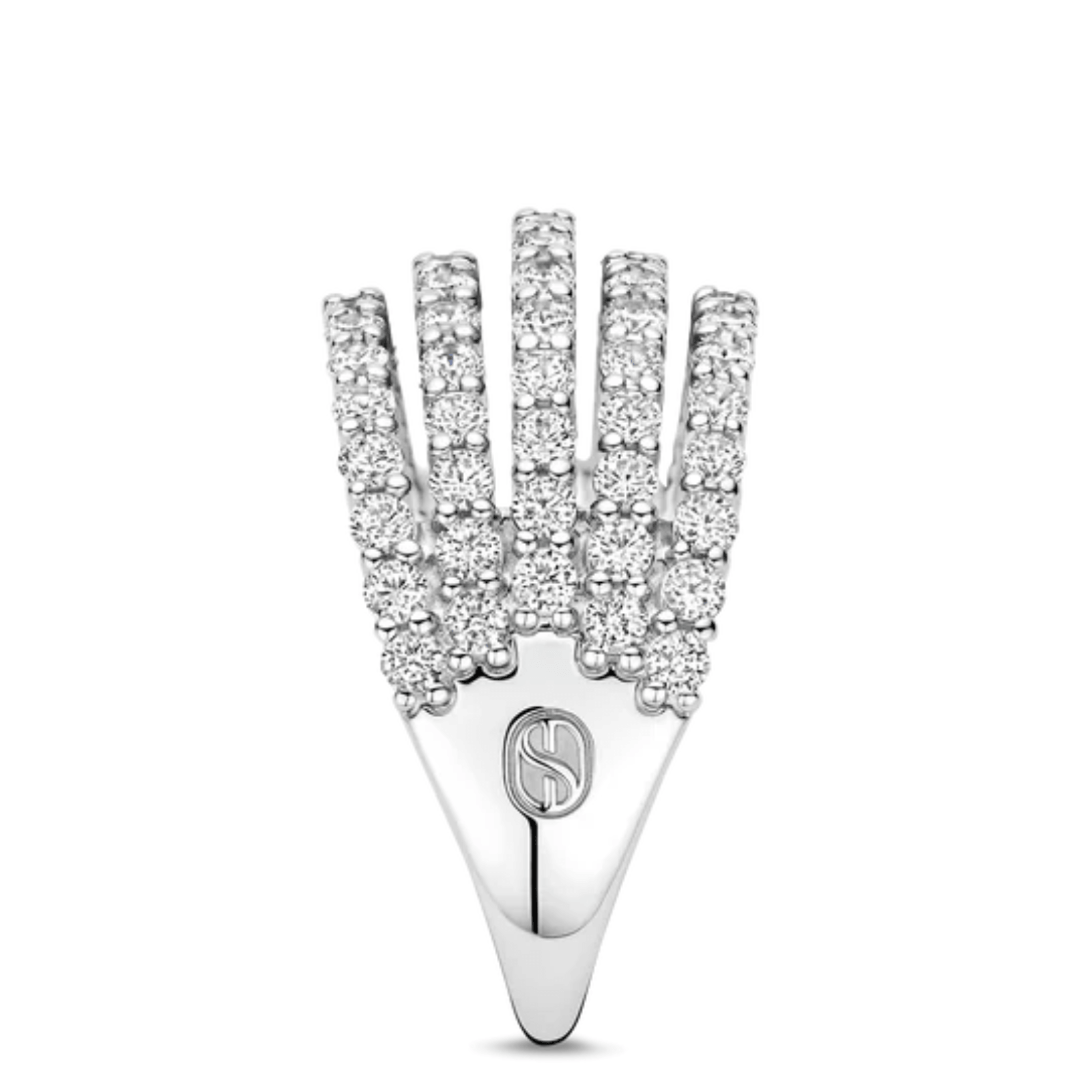 Wear this statement ring alone for a bold yet refined look or combine it with other rings for a layered style. The five-band design adds presence, while the balanced structure ensures elegance. 12425ZI Classics ring