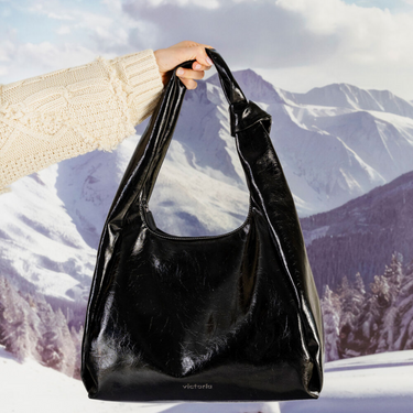 Victoria Large Black Patent Shoulder Bag