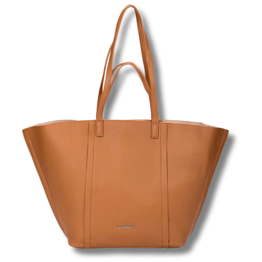 Ladies large tan toned leather effect bag from Wonders, this shoulder bag is in a tote style.
