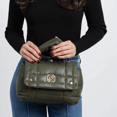 Ladies khaki crossbody bag in a quilted style, complete with grab handle from XTI's ladies handbag collection.
